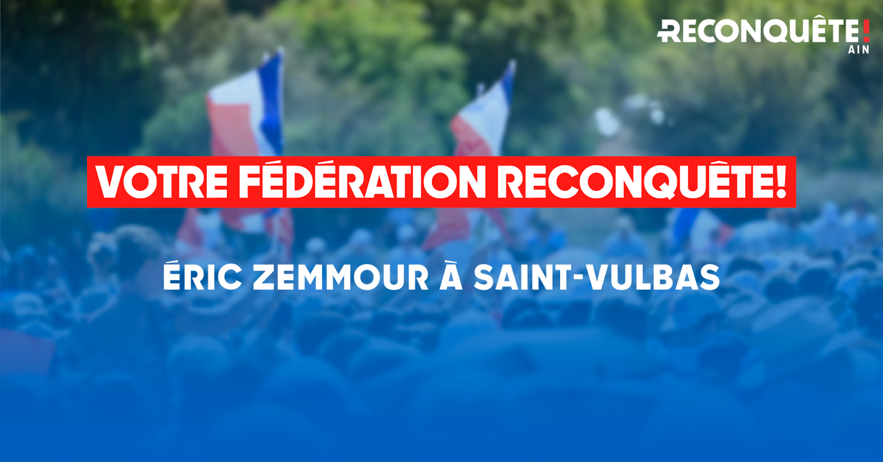 Le vendredi 16 mai 2025, la Fédération Reconquête de l’Ain a eu l’immense honneur d’accueillir Éric Zemmour, président de notre mouvement, à Saint-Vulbas, pour une grande réunion publique placée sous le signe de la fierté, de la conviction et du rassemblement.